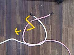 ![]() | ※注意:2度目の交差を間違えるとたて結びになるので、ほどけなくなるので注意してください。テグスなど細いものにはあまりおすすめしません。 |