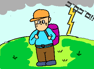 もし近くに車や電車があればその中に避雷針のある山小屋、本格的な建物の逃げ込むほうが懸命だと思います。 |