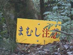 大口十曽の2番目の滝は行者の滝です。 道路脇に車を止めて目の前に現れるのが「まむし注意」の看板です。 のらちゃんが取材した時期は12月なのでたぶん大丈夫だとは思いますが 滝までは少々下って見に行かないといけませんのでまむしに注意しながら滝を見てくださいね 滝は2連で水量も多いでした。