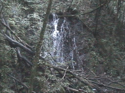 大口十曽の3番目の滝は冷水の滝です。(れいすいて読むのかな?ひやみずかな?誰か教えてください) この滝は道路から150mくらい離れていますので、そこから少し歩かなくてはいけません。 道は川沿いですので迷子にはならないかとおもいます。結構あるくのでここでも「まむし」には気をつけてね。 滝入口は木の階段になっていますが、大変滑りやすいので気をつけてください。 階段をおりると目の前に滝がみえますが(下の写真右側)この滝は冷水の滝ではありません。 そこから川を石沿いに渡り奥にあるのが目的の滝です。 濡れるかもしれないので長靴をはいていかれたほうがいいかな?