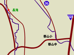 旧郡山役場から県道40号を約5分くらい西へ進み、 川内方面にいく看板が出ていますのでそこを右折し北に向います。 5分くらい車を走らせると橋が見えてきますのでその橋を渡り右折すると右手に滝が見えてきます。 下記の写真でもおわかりのように公園化がされていますが、駐車場がありませんので道路脇に車をとめ 滝を眺めます。夏になればこの滝で子供たちが飛び込んだりして遊んでいるそうです。