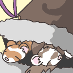 中身がボア地の袋状ハンモックの中で固まって寝ている彼らがいた。